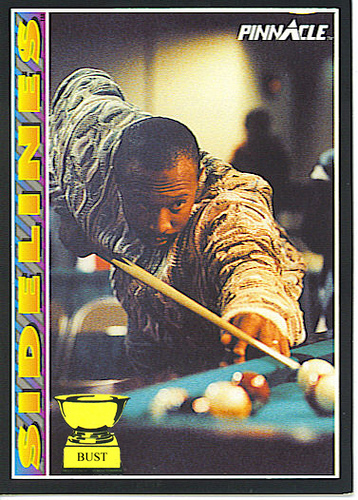 A shark with no bite: To be honest, Kirby Puckett's 1992 "Sideline" card should have shown him playing baseball. That's how enthralled he became with billiards that year. In 1992, Kirby purchased The Twin Cues, his favorite downtown Minneapolis pool hall, and spent every free hour he had there. But there was a problem: Kirby was no good. His failure to grasp even basic geometry meant it would take him hours just to run one table. Determined to improve, he'd hit The Twin Cues at 7 in the morning and play for five hours before opening to the public, missing bank shots and scratching on breaks the whole time. He added 30 pounds to his already considerable frame and began wearing foot-thick sweaters. His determination quickly turned into obsession, and he began missing baseball practices on a regular basis. Manager Tom Kelly had had enough. He sent pitcher Rick Aguilera down to the Cues to retrieve the All-Star outfielder. Aguilera, who had a beard-trimming appointment that afternoon, wasted no time, breaking down the pool hall's locked front door and yelling, "Hey, Minnesota Fats, let's play some damn baseball already!" Kirby, unamused, charged the big righty and hit him across the face with his tailor-made cue. Fortunately, Aguilera's beard absorbed most of the blow. Unfazed, he picked up his pudgy teammate, stuffed him in the trunk of his 1992 Buick LeSabre and then burned the Cues to the ground. A shamed Kirby never played pool again.